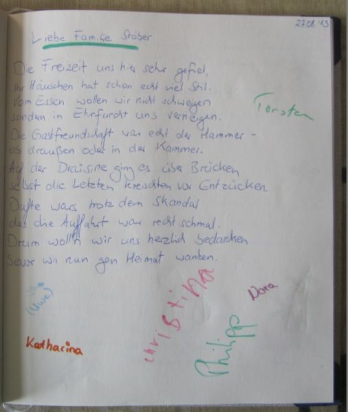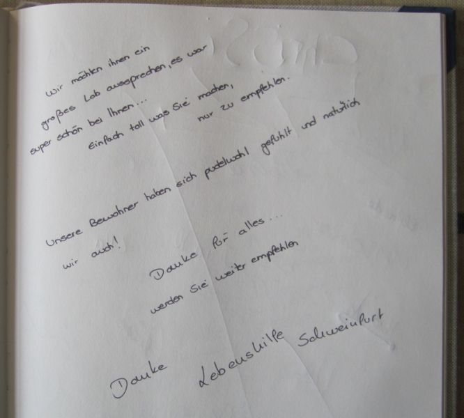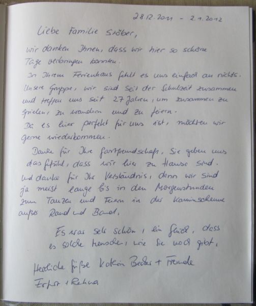 Wie könnte man unser Haus besser beschreiben als mit den Worten unser Gäste. Betrachten sie das originales Gästebuch und "blättern" Sie in diesem.