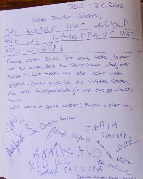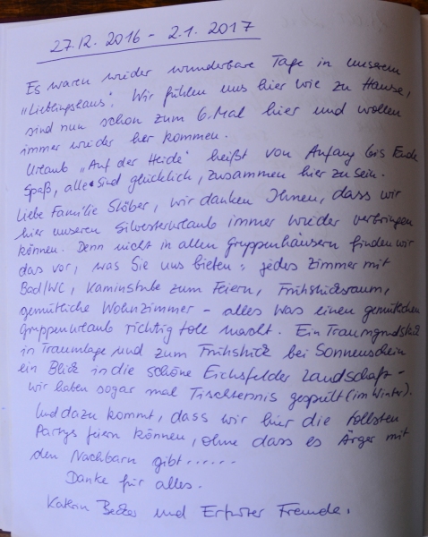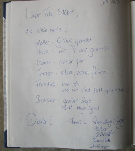 Wie könnte man unser Haus besser beschreiben als mit den Worten unser Gäste. Betrachten sie das originales Gästebuch und "blättern" Sie in diesem.