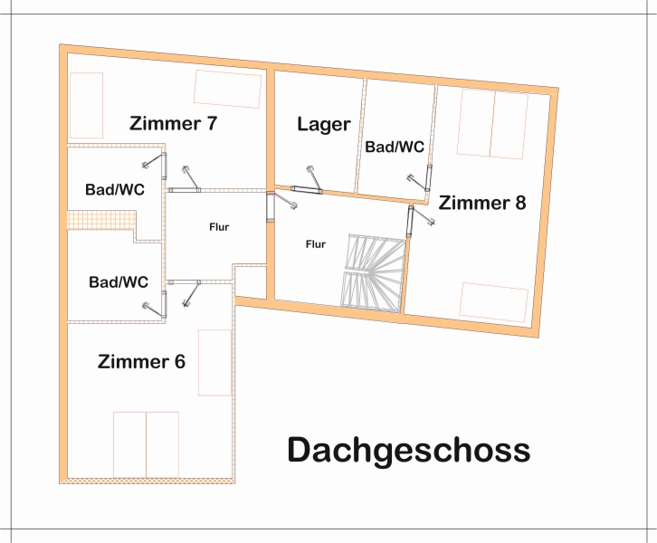 6 Doppelzimmer mit Dusche und WC