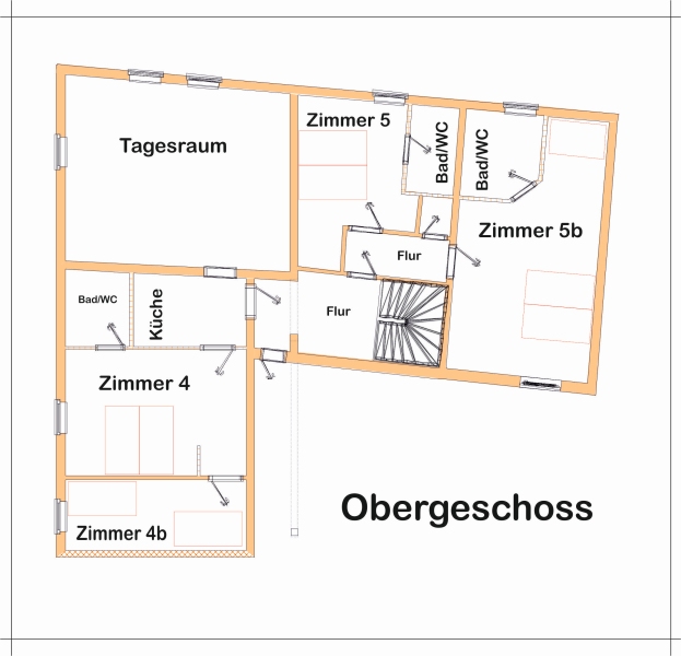 - 4 Doppelzimmer mit Dusche und WC